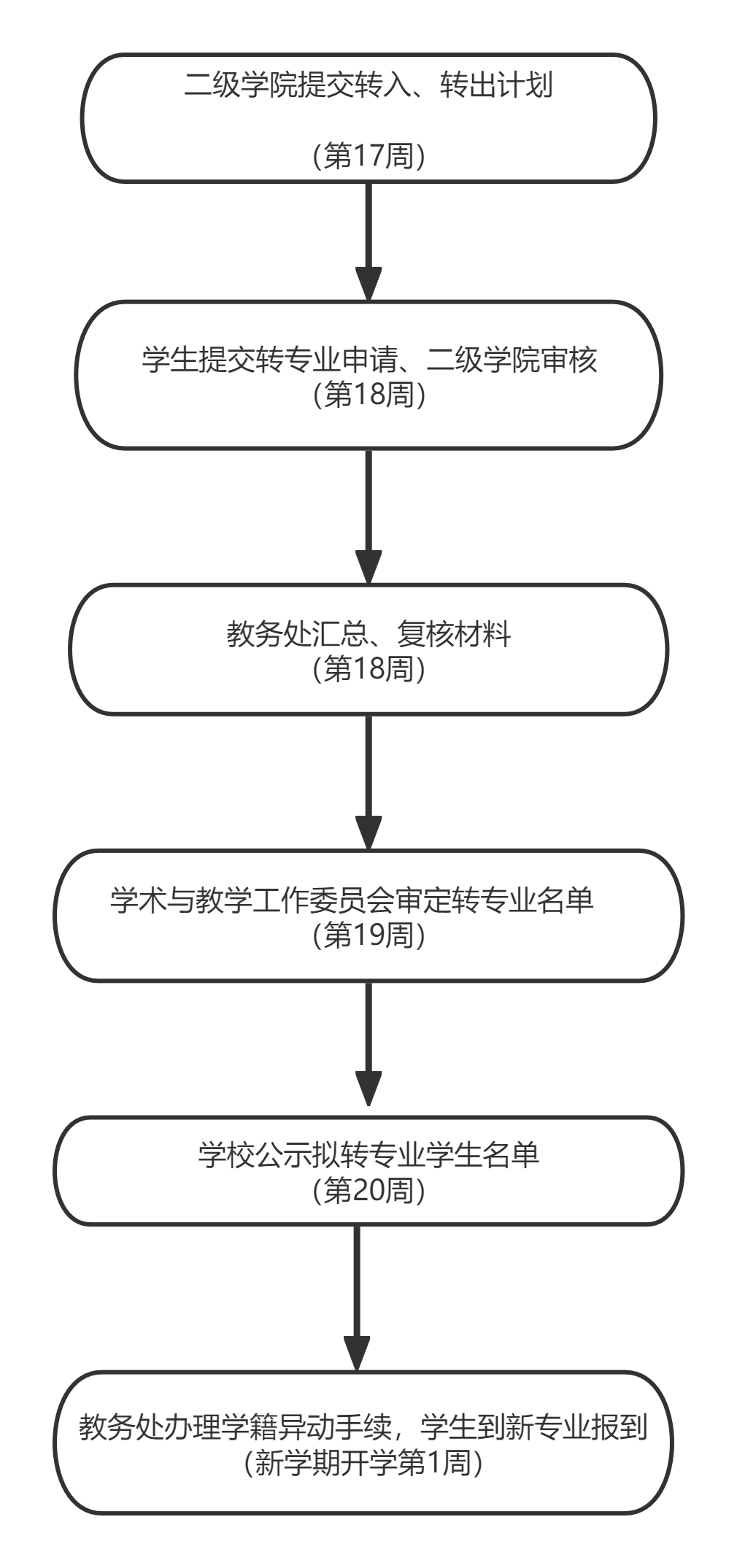 (四)第19周,学术与教学工作委员会审核确定转专业学生名单。