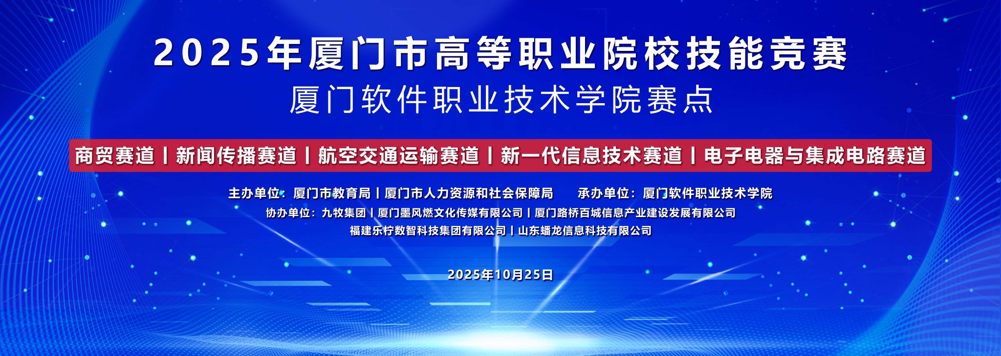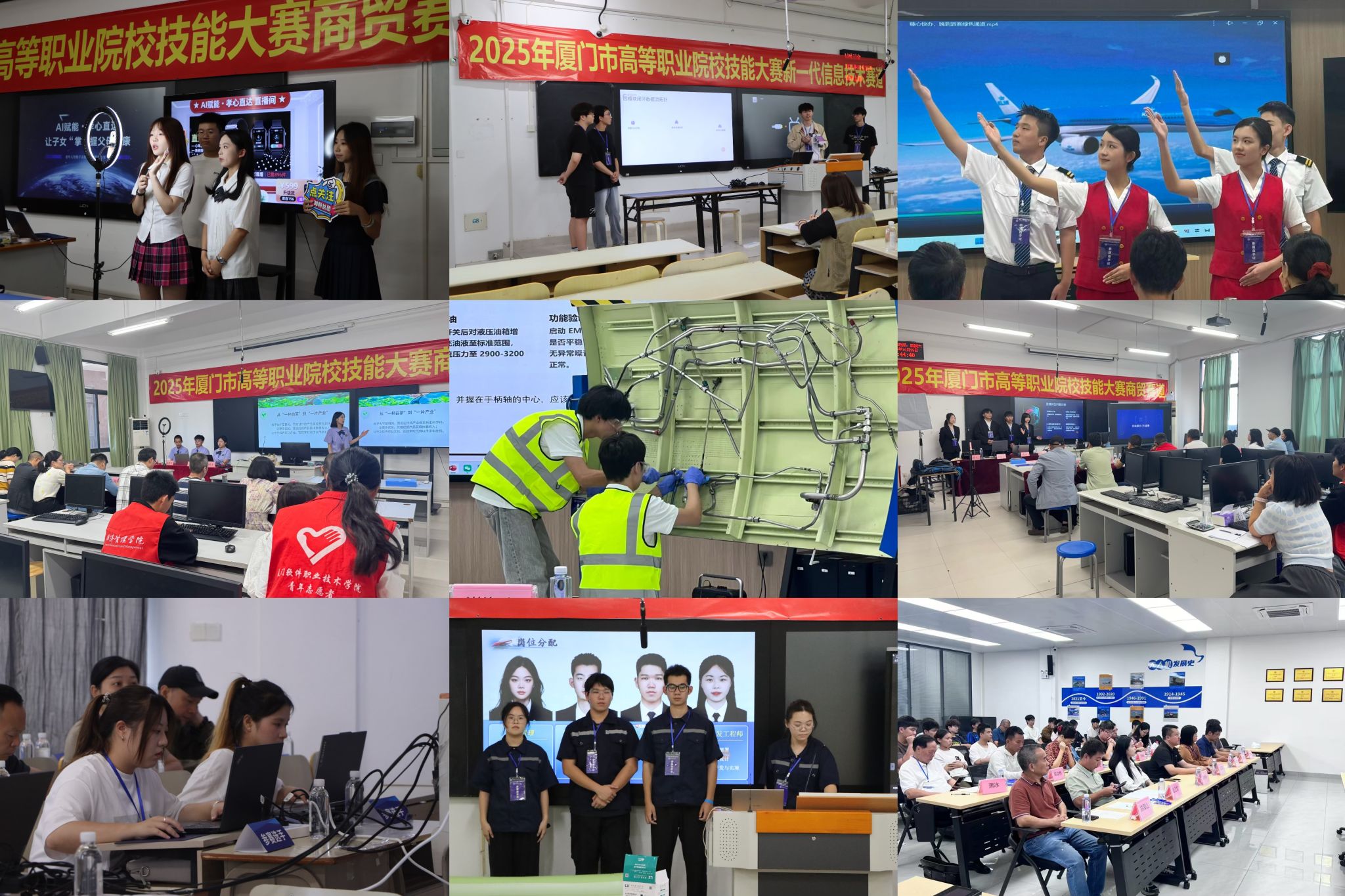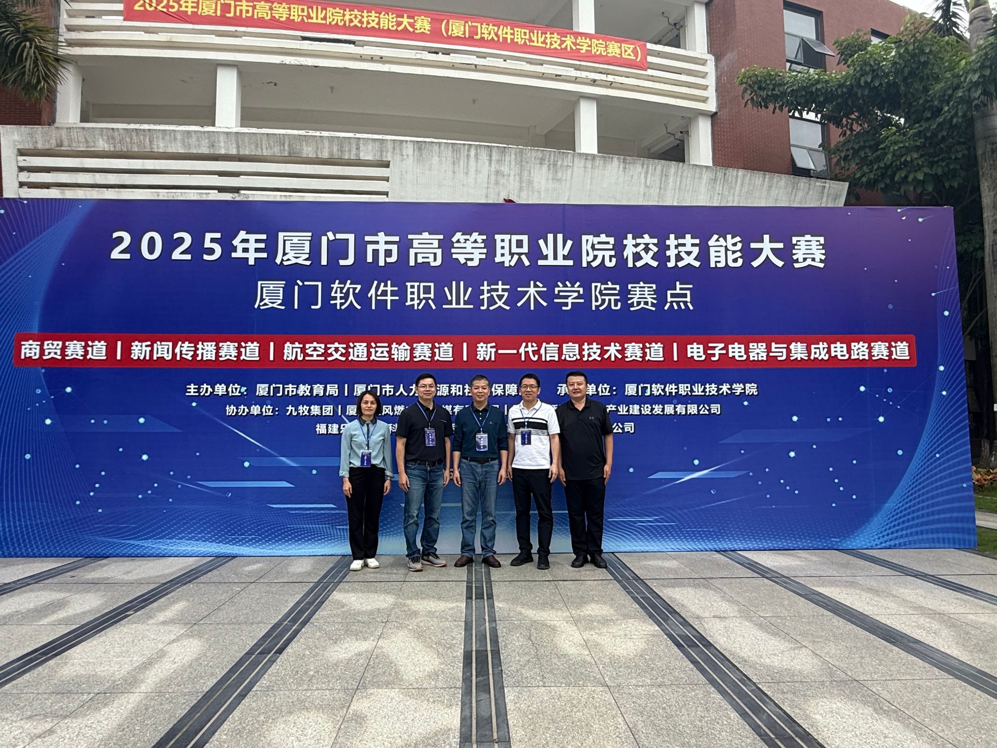 10月25日,2025–2026学年厦门市职业院校技能大赛(高职组)商贸赛道、新闻传播赛道、航空交通运输赛道、新一代信息技术赛道和电子电器与集成电路赛道在我校顺利收官,我校120余名师生工作人员为本次比赛承办提供了优质的服务和保障。本次比赛共有来自全市8个高职院校82个师生团队320余位选手和指导老师参加,邀请81位高校和行业企业裁判分9个赛场对各参赛队按省赛国赛标准进行打分,最终角逐出一等奖7个,二等奖9个和三等奖6个,参赛师生数位居厦门市6所承办校首位,各项承办工作得到了厦门市教育局和厦门市教育科学研究院领导老师的高度肯定和赞扬。